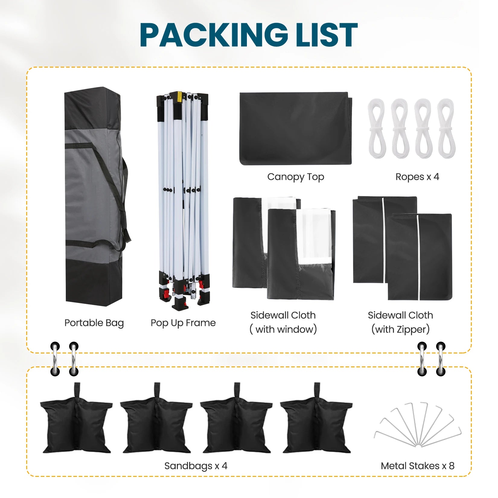 10x10 Pop Up Canopy Tent with 4 Walls & Accessories Kit Waterproof Instant Shelter for Commercial & Personal Events