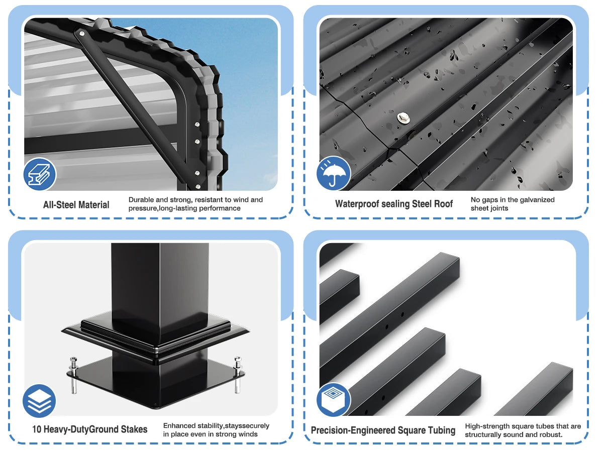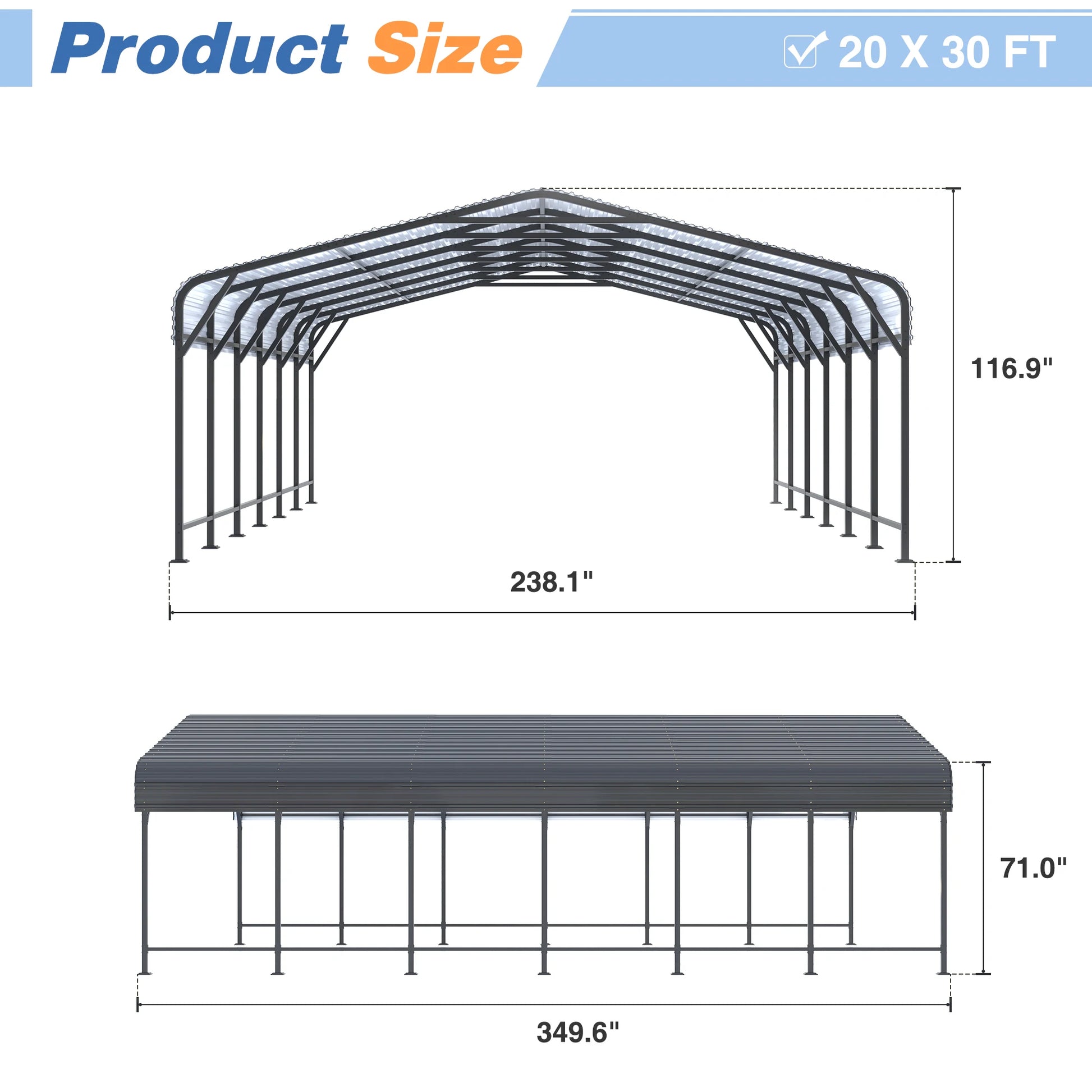 20x20/20x30/20x40FT Metal Carport with Enhanced Base Outdoor Heavy Duty Galvanized Car Shelter
