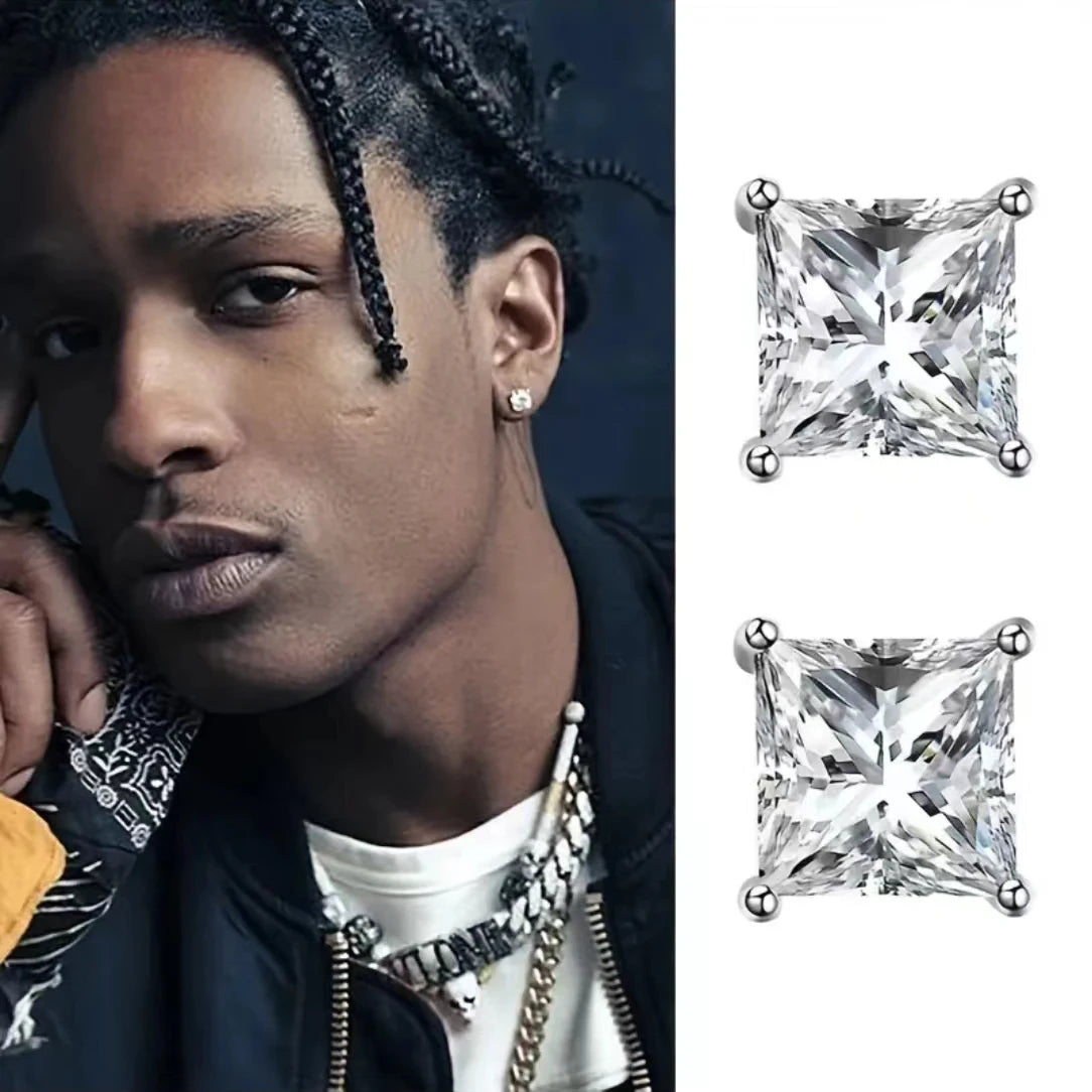2pcs/pair S925 Moissanite Square Lab Created Stud Earrings, , Christmas Gifts