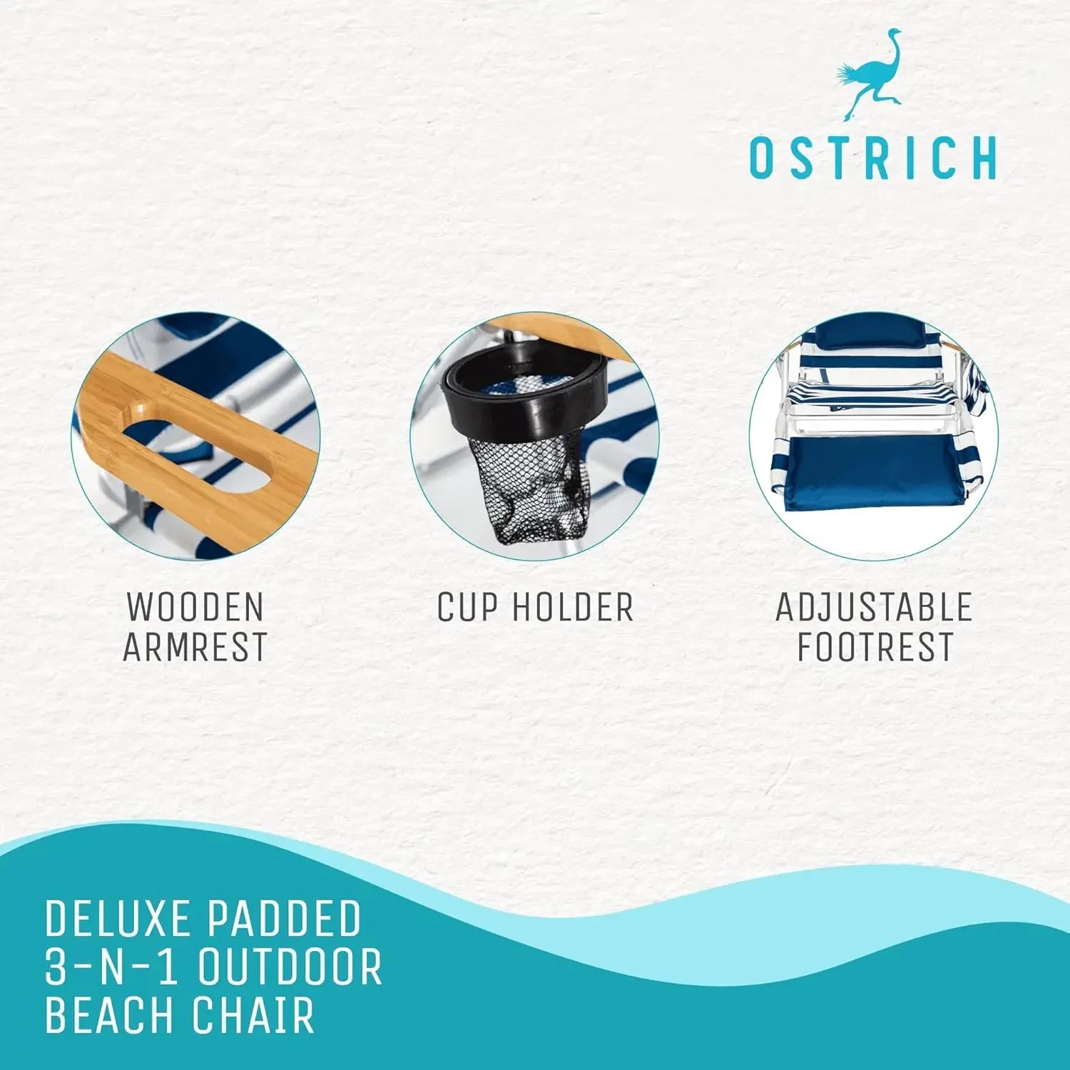 - Adjustable Positions: Reclining beach chair offers a wide range of options with 5 chair positions and 3 footrest positions for peak comfort you desire