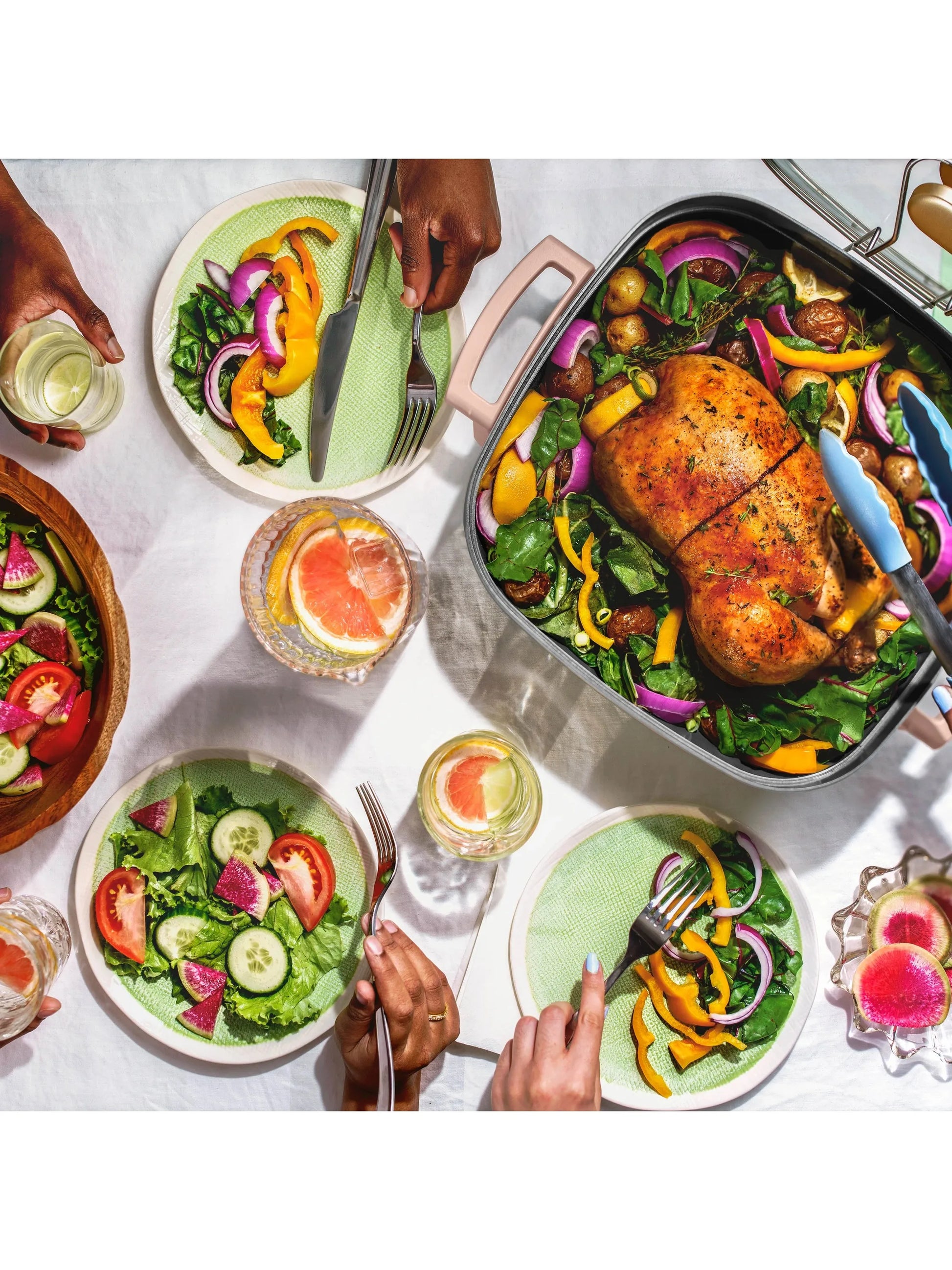 5-in-1 Frying Pan for Sautéing, Steaming, Stewing, Slow Cooking and More. It provides 40% extra depth, allowing you to increase from 5-quart capacity to 7-quart capacity. Nonstick coating provides excellent nonstick performance and easy food release. It combines elegant design and modern colors to create a high-performance appliance that looks great on your kitchen countertop.
