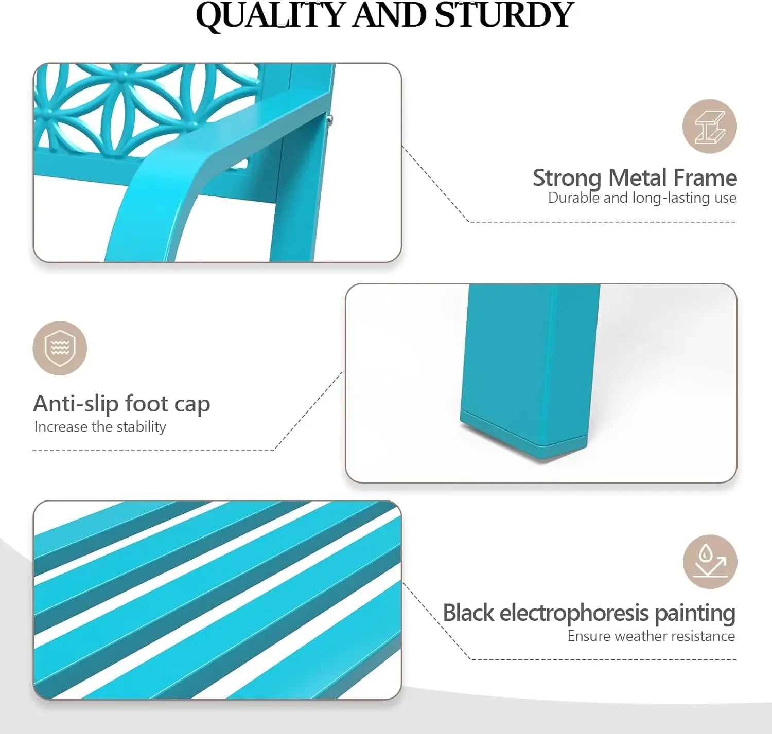- Quality and Sturdy: The 50-inch metal outdoor bench is made from high-quality metal that is built to last. It is weather-resistant and can withstand the elements, making it the perfect choice for outdoor use. The legs are equipped with anti-slip foot caps make the bench more stable to use