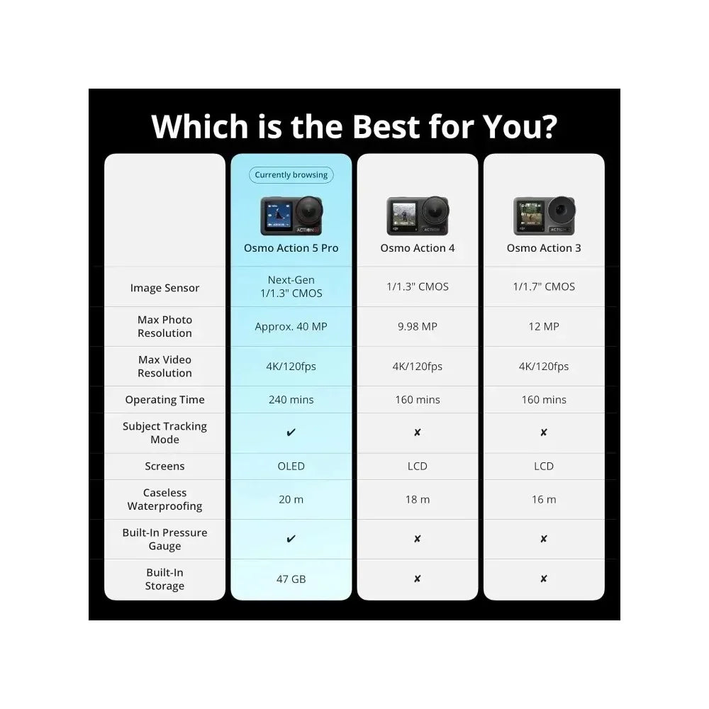 DJI Osmo Action 5 Pro Combo, Action Camera 4K with 1/1.3" Sensor, 12h Battery Life 3 Batteries
