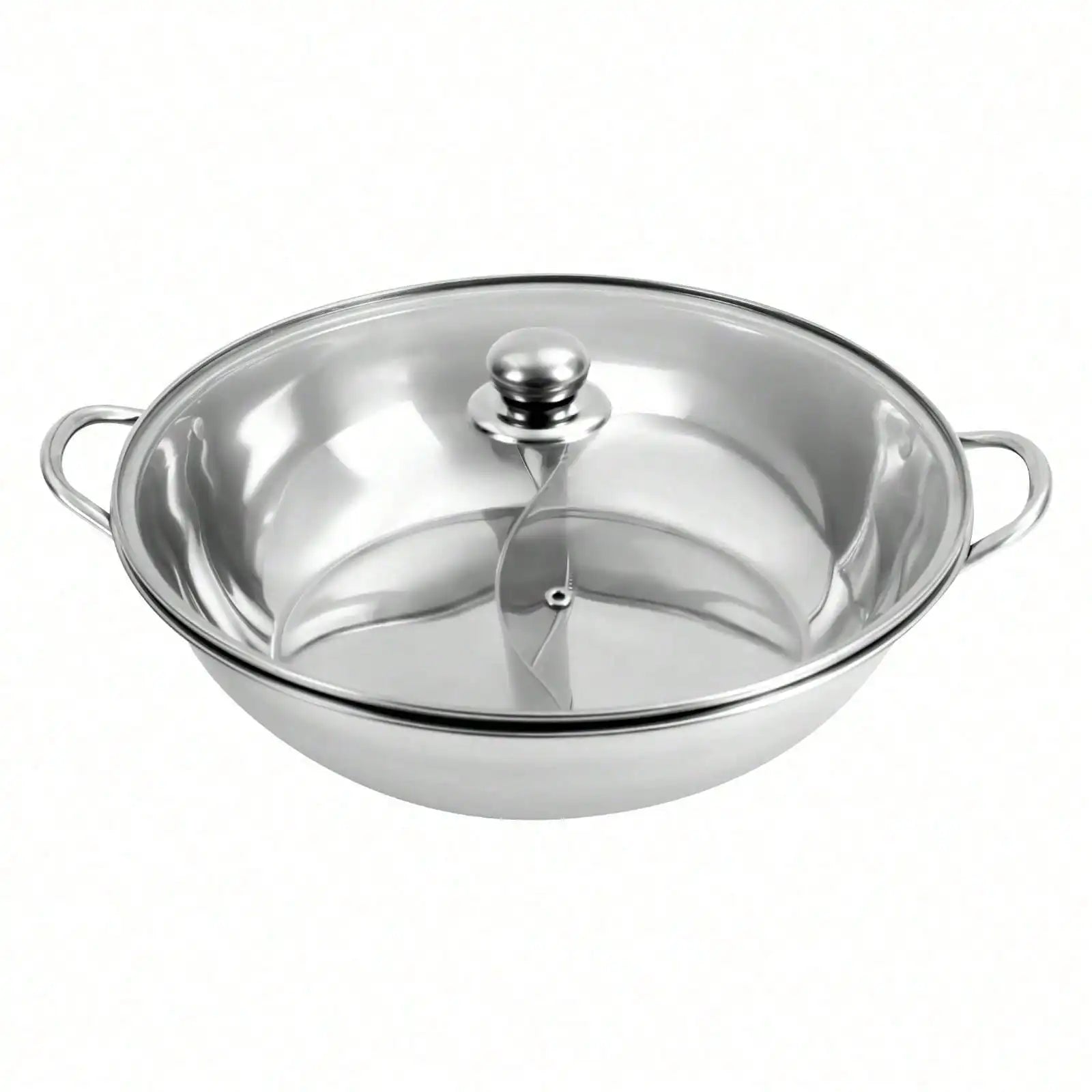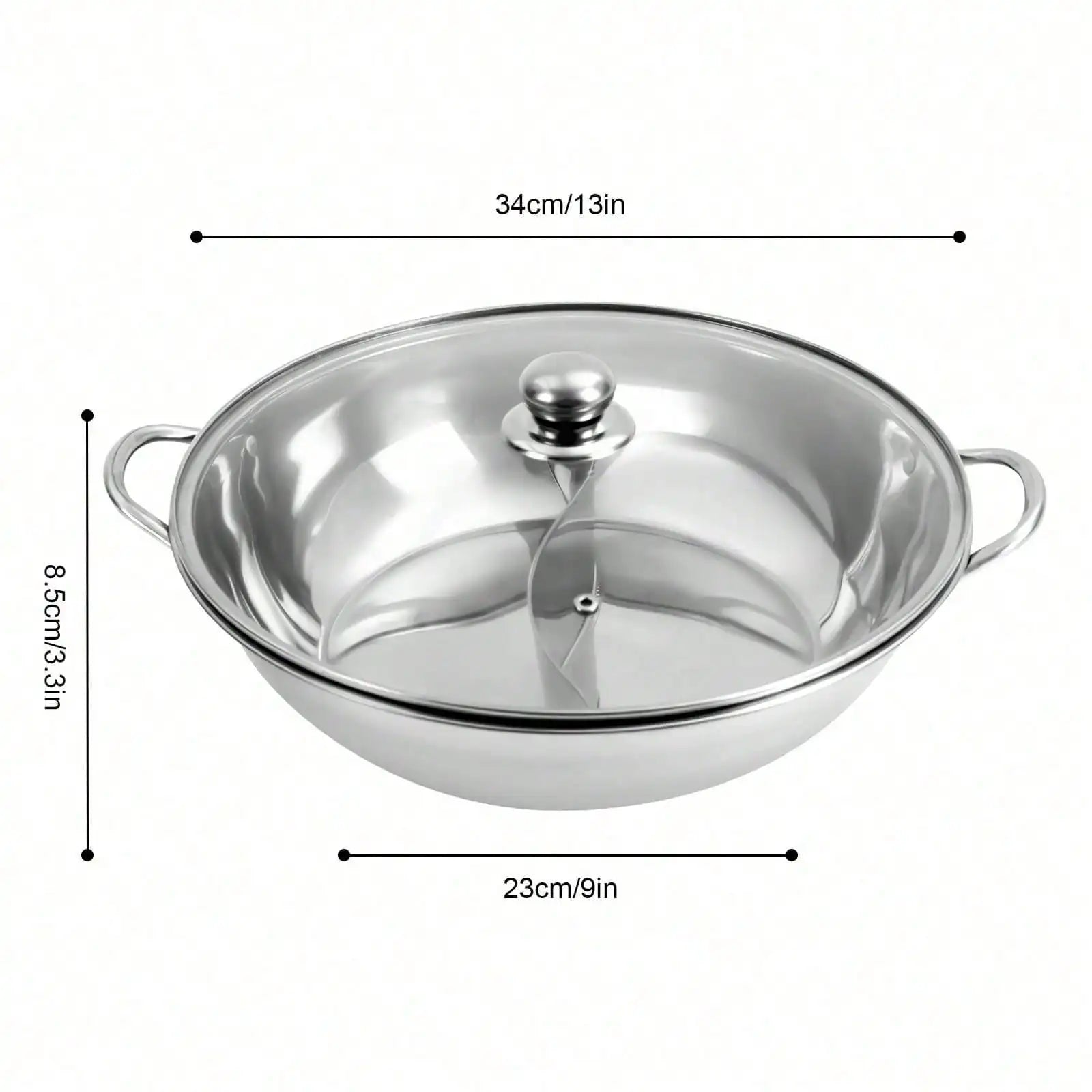 Dual Sided Hot Pot Set W/Divider & Glass Lid Cookware 34cm/13in