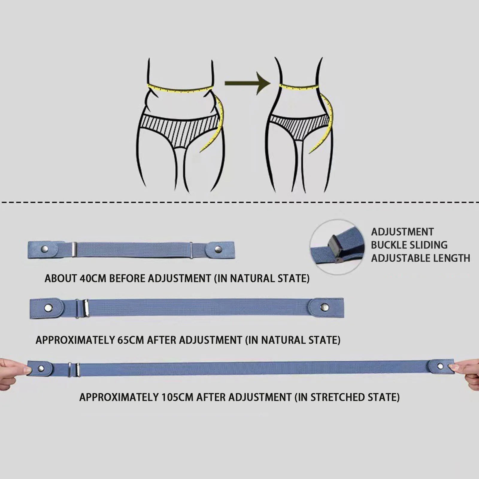 Just snap the button one time, extremely easy to use. A Quadrate buckle gives one more ways to your jeans or dress.The flexible size belt up to 48” with a buckle, you can adjust a suitable size as your needs.The design with elastic band perfect for maternity,special needs men or children.