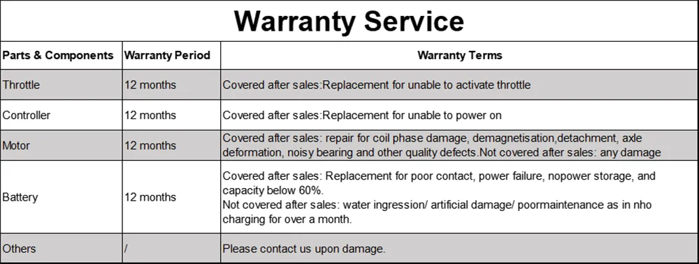 We offer a one-year warranty service (free parts or repairs),You can contact us at any time through AliExpress