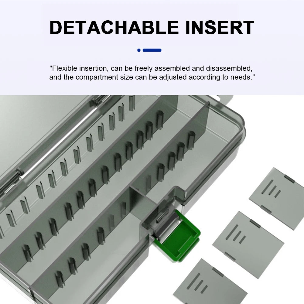 2.Customizable Compartments: The fishing box features removable and adjustable dividers, allowing for easy customization of compartment sizes. This flexibility enables you to organize your fishing gear according to your specific needs and preferences.