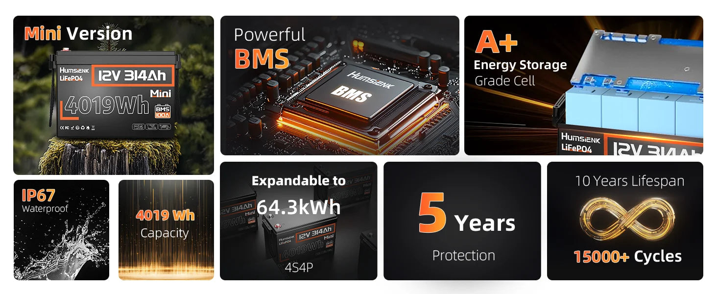 【Built-in 100A BMS – Safe & Maintenance-Free】