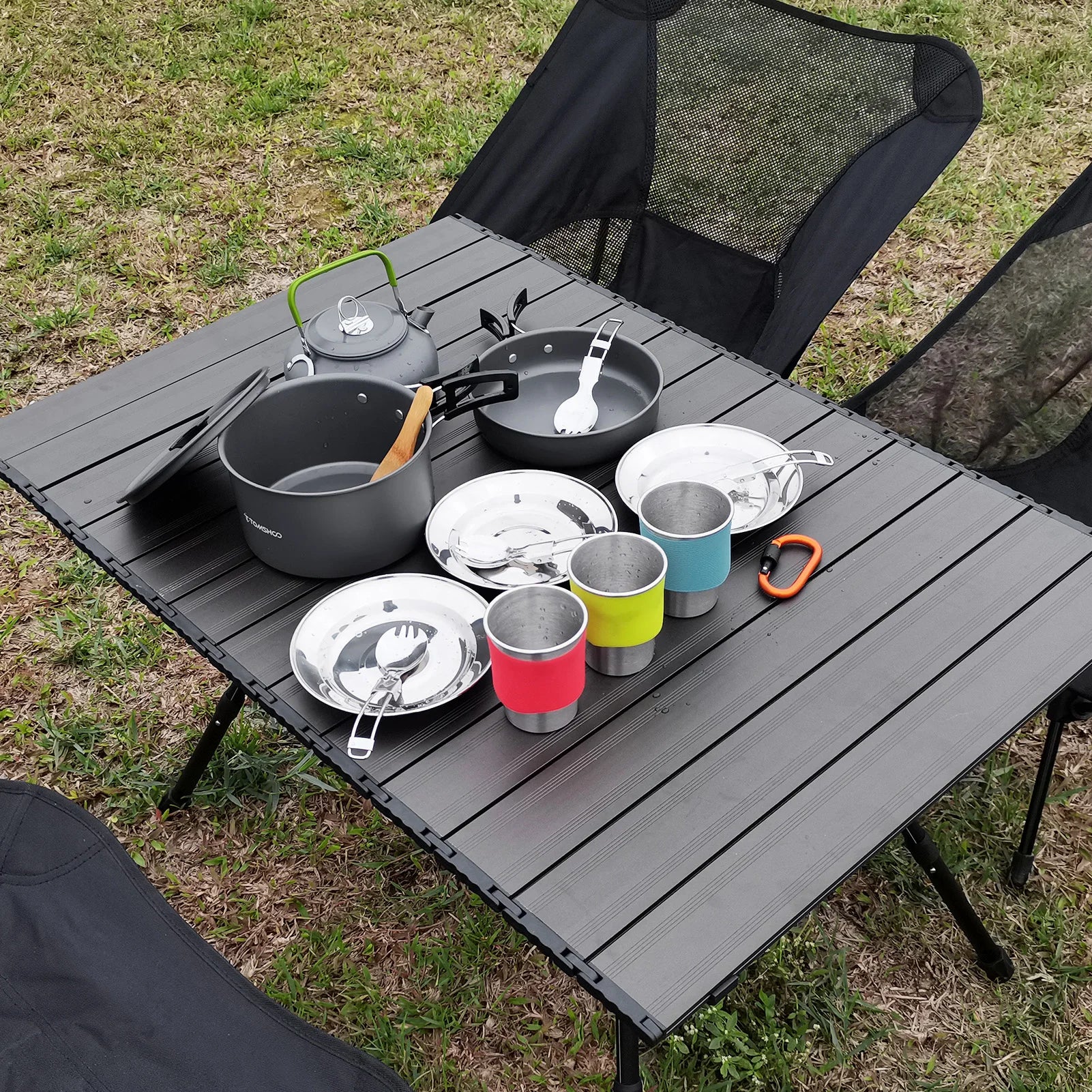 1. Versatile Cooking Options: The camping cookware set offers a wide scope of cooking options, including a pot, pan, kettle, and utensils. Whether you want to boil water, cook a stew, or fry some eggs, this set has got you covered.