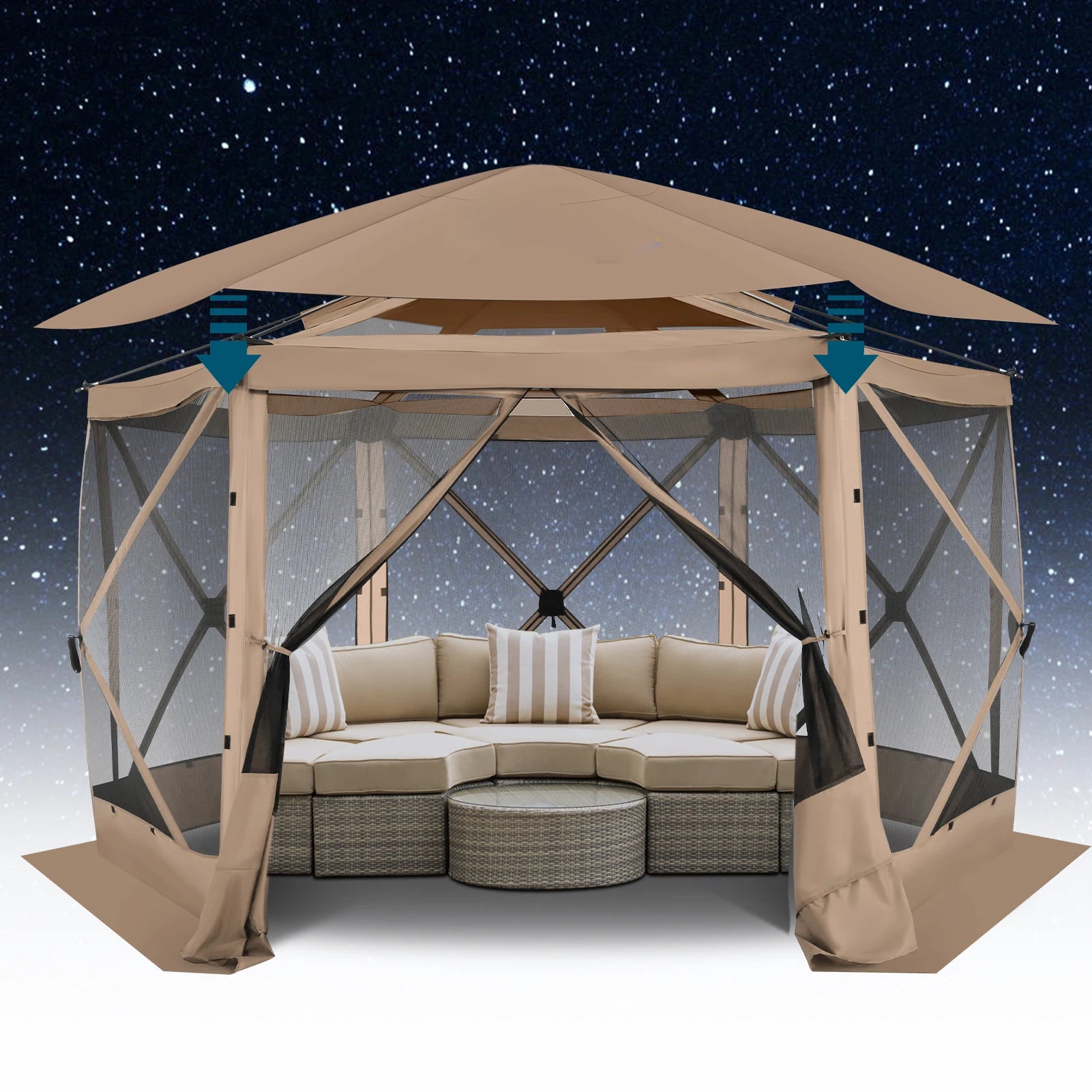 ✅【Versatile Removable Sidewalls】 Enjoy ultimate flexibility with our removable sidewalls. Attach them for complete privacy during outdoor activities, or remove them to benefit from high-density mesh that offers both fresh air and scenic views while effectively keeping mosquitoes at bay.