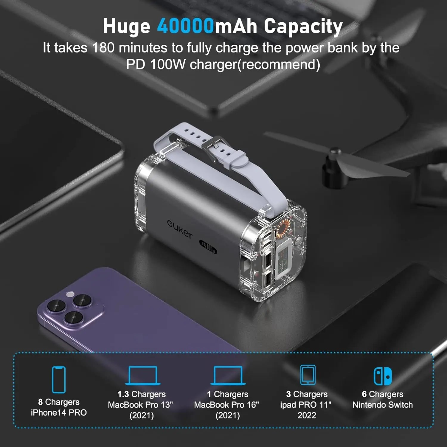 Euker 100W Power Bank supports almost any USB-C device with an input power of 100W or less.