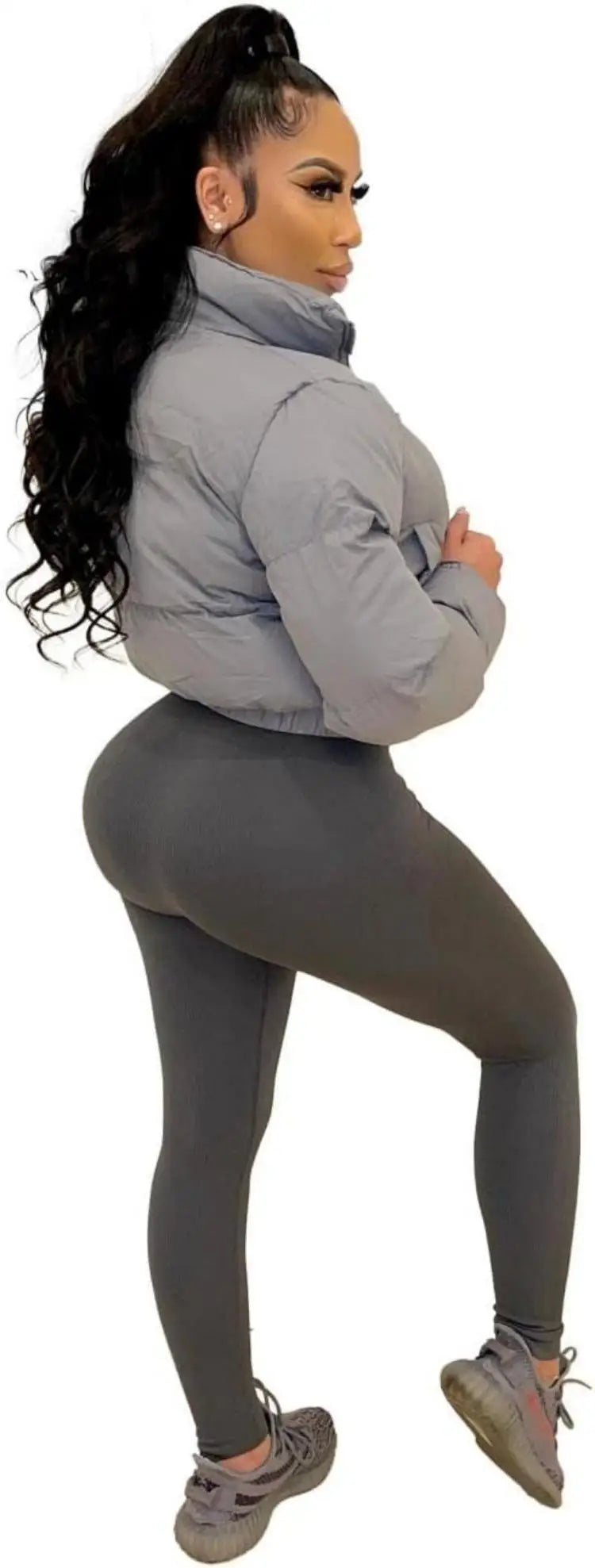 Puffer Jacket Womens Cropped Zip Casual Cotton Coat Padding Warm Jackets Winter Coats
