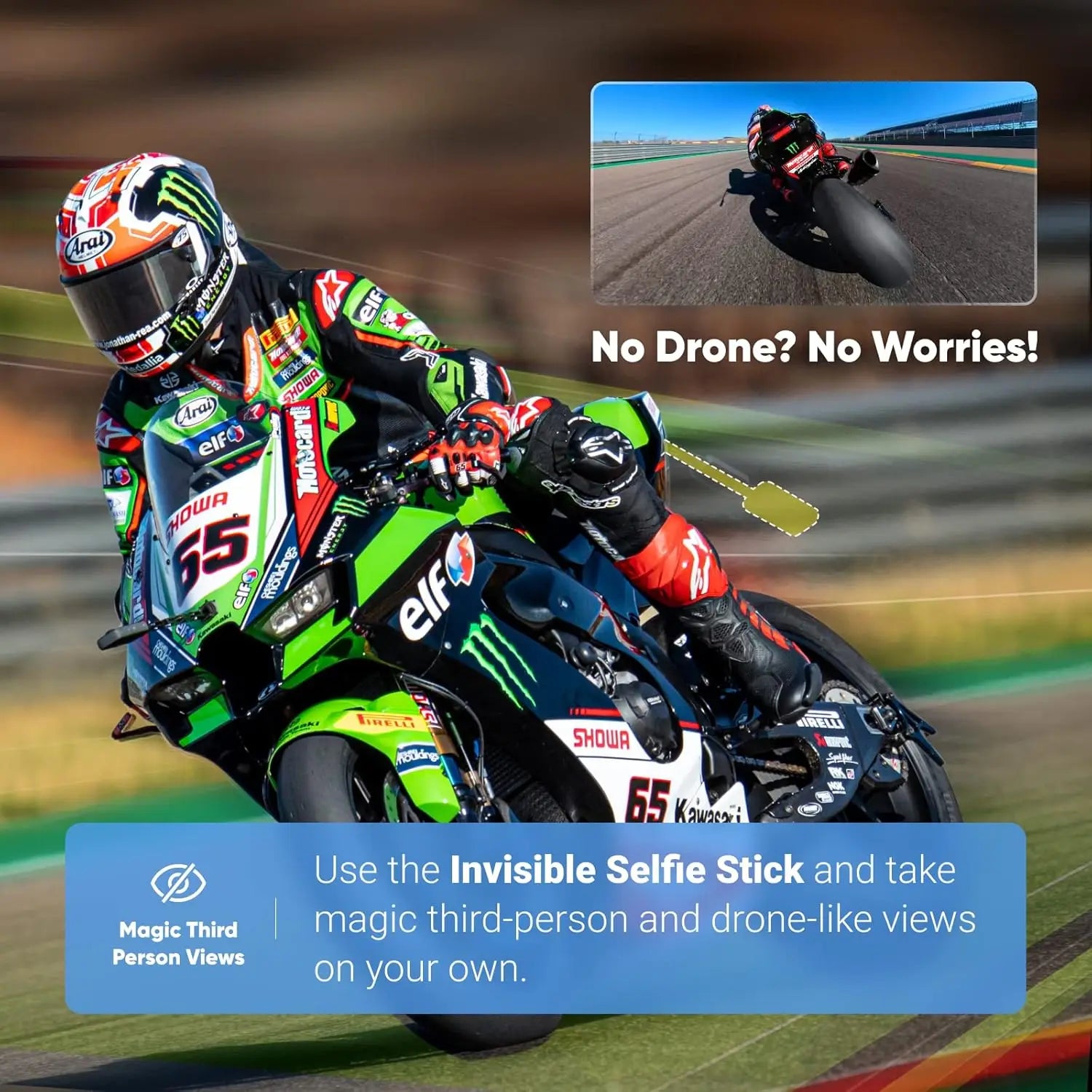 IMPOSSIBLE THIRD PERSON VIEW: Don't ruin the view with an ugly selfie stick! The 360 Lens makes the Invisible Selfie Stick totally disappear from your shots for impossible drone-like footage and third-person perspectives.
