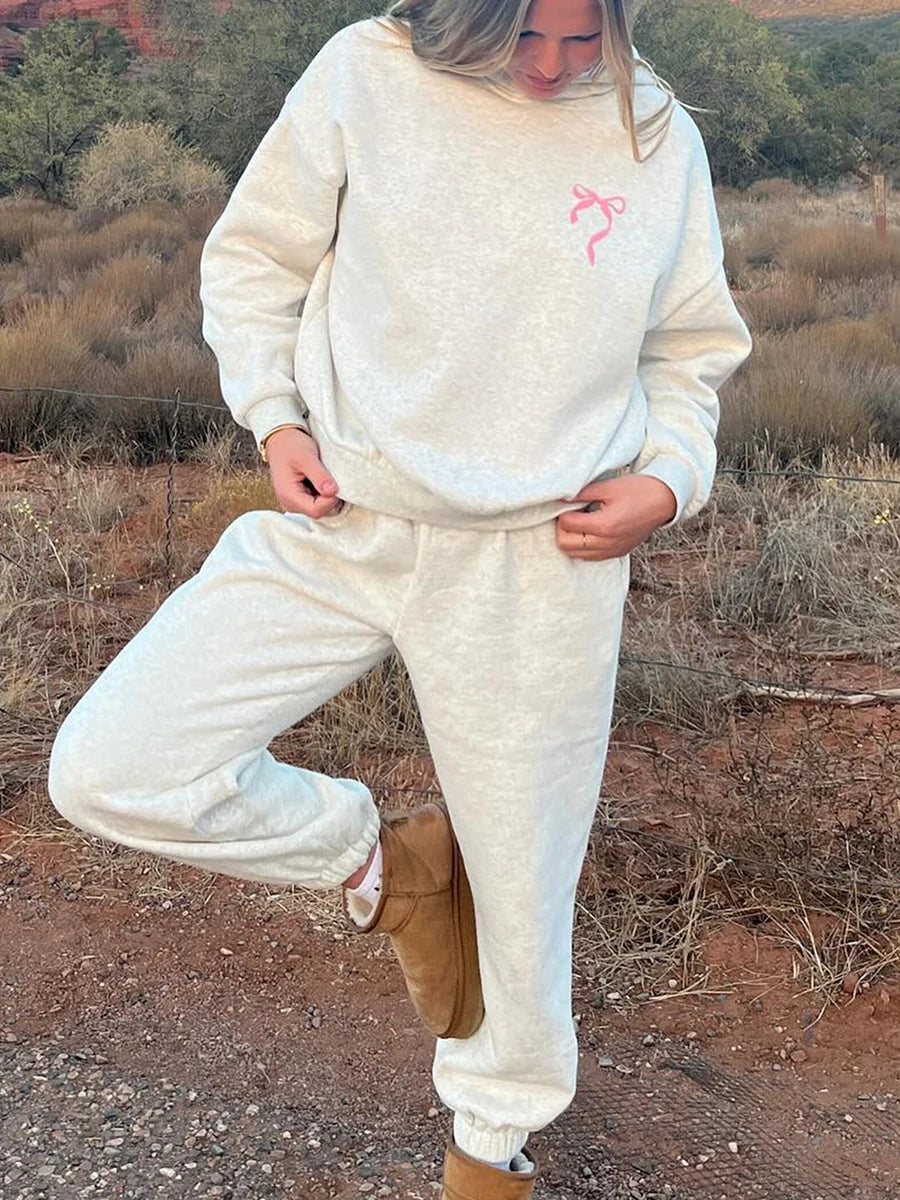 Women's 2 Piece Casual Outfits Long Sleeve Bow Embroidery Hoodie Solid Color Pants Sets