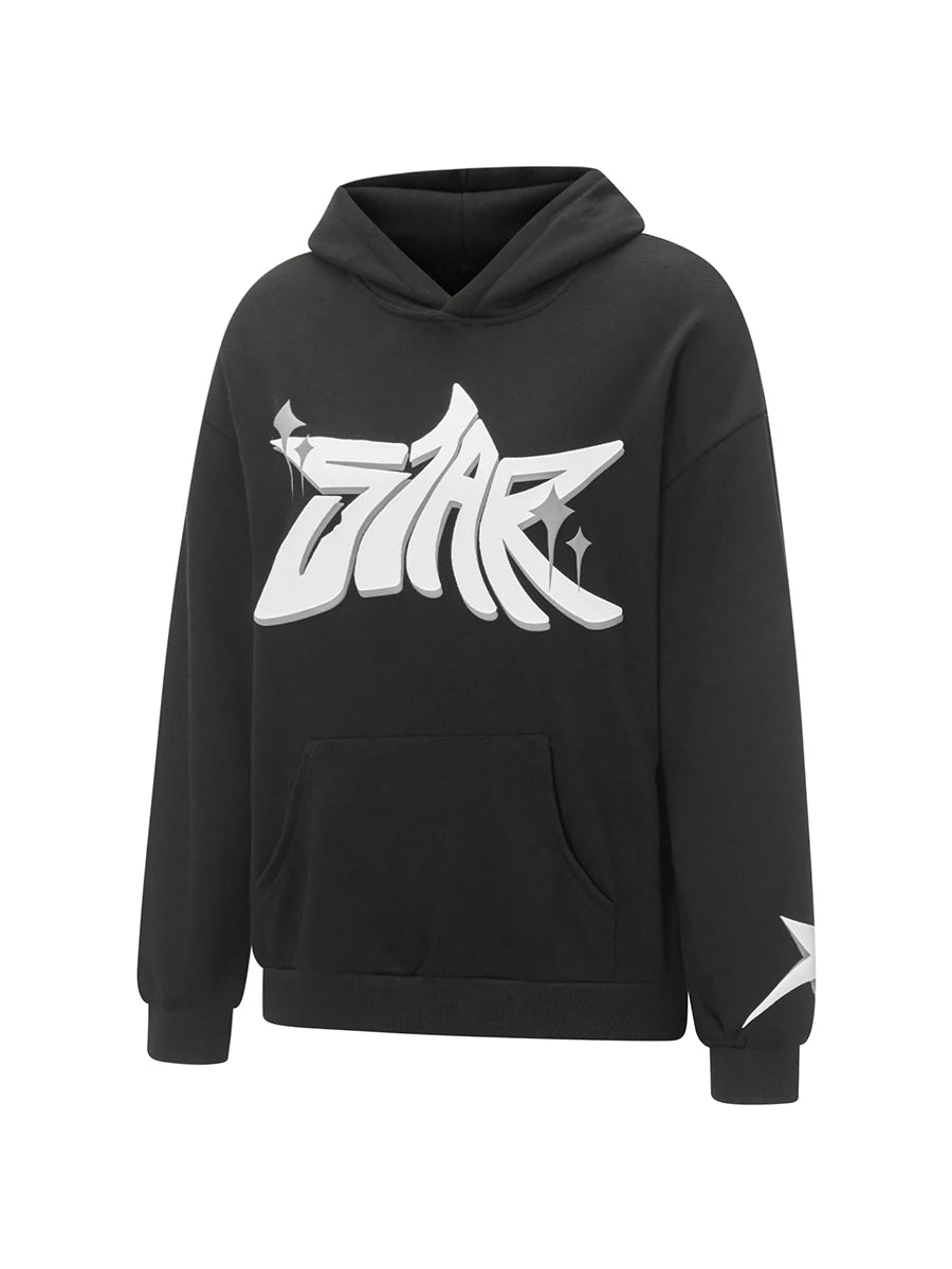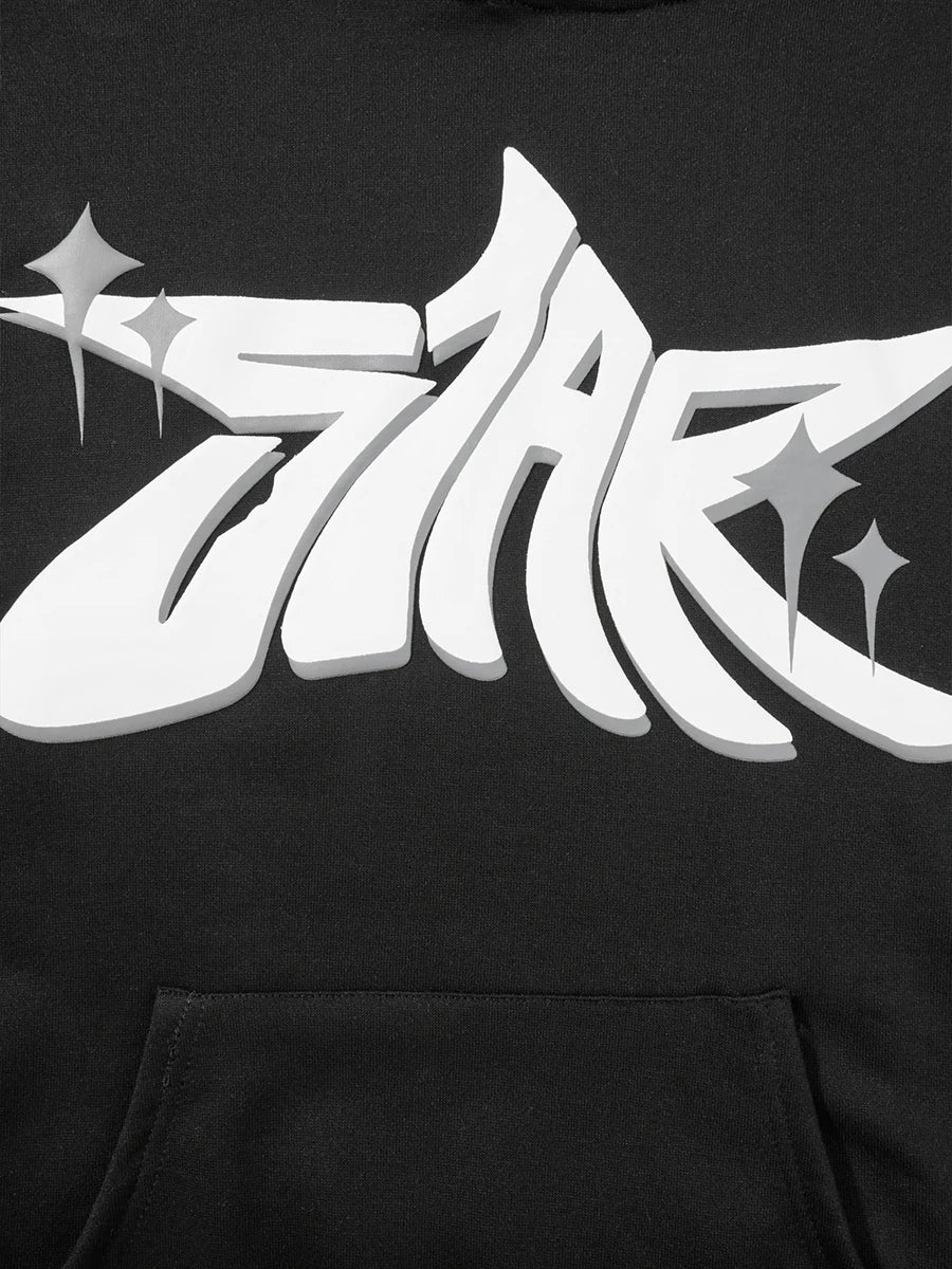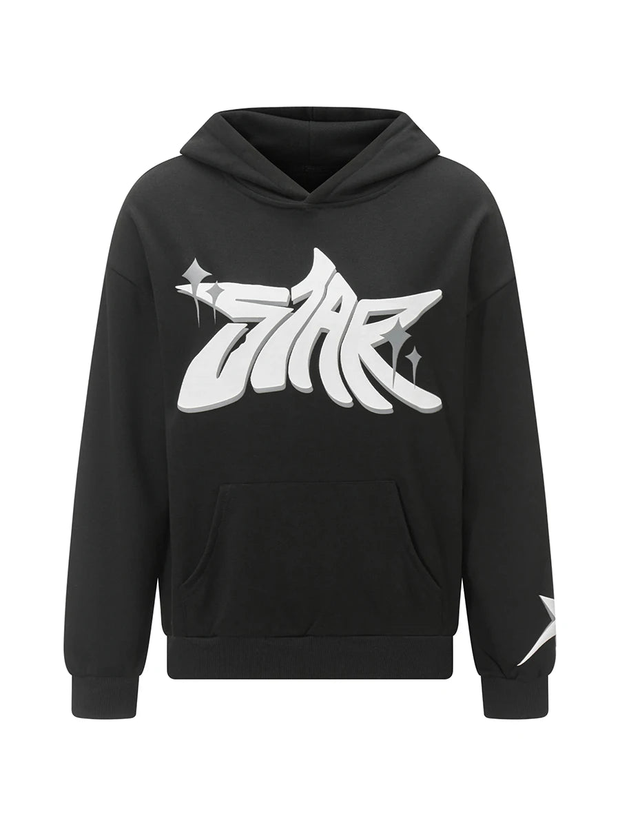 Casual star print hooded sweatshirt, trendy long sleeve blouse, fashionable and comfortable.