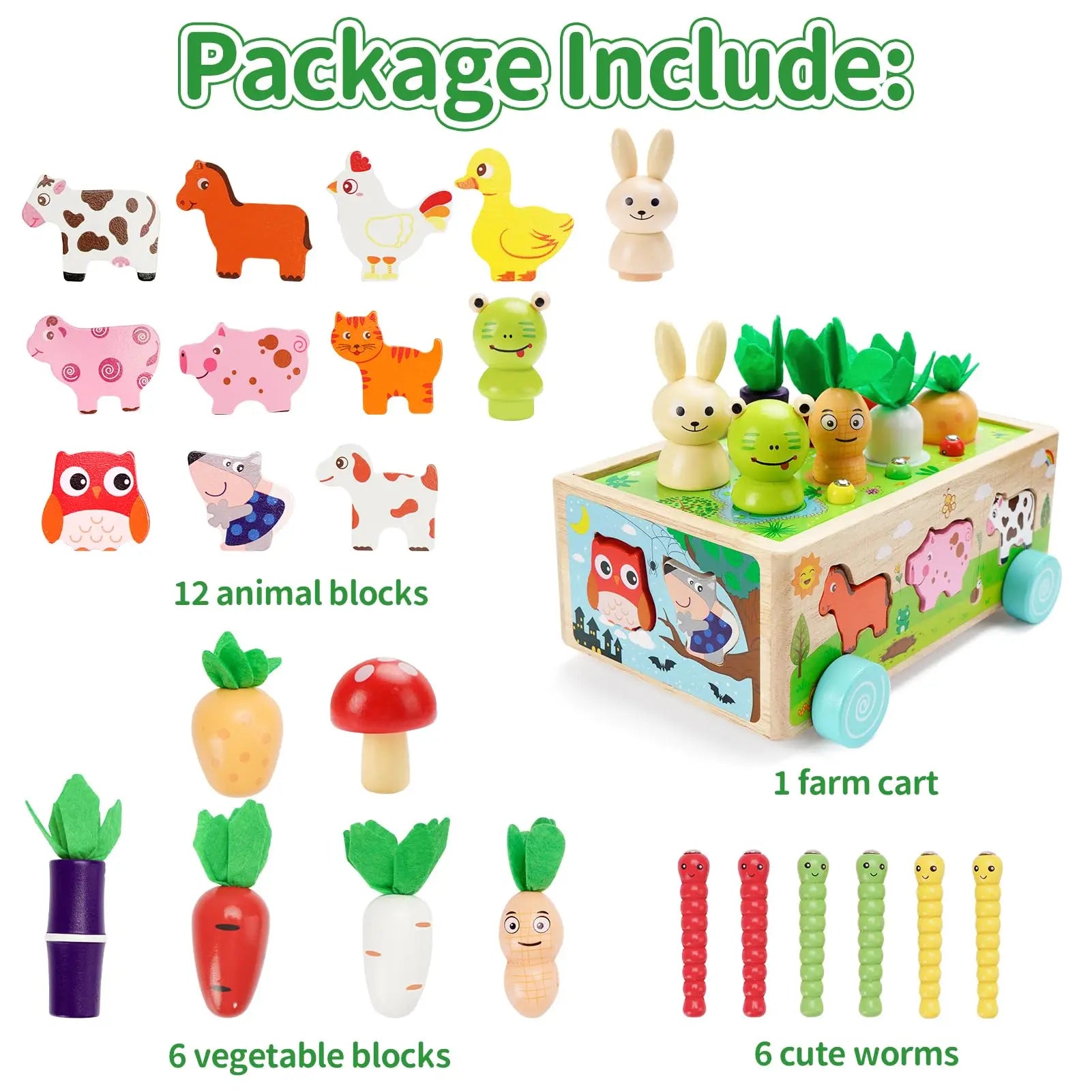 Wooden Shape Assortment Matching Children Toys Animals Game Cart Building Blocks Kids Christmas Gifts